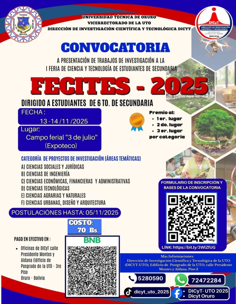 es la primera actividad que se desarrolla dirigida a los estudiantes de colegio de la ciudad de oruro donde se puede presentar sus trabajos de Investigación en las diferentes areas