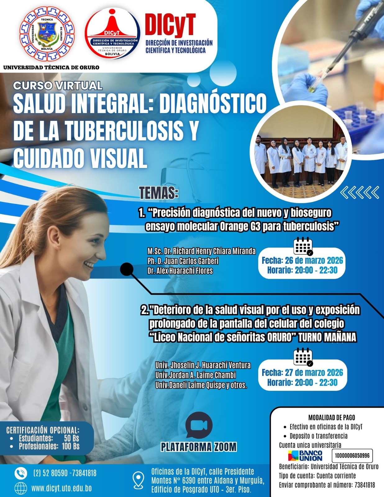 Oficinas de la DICyT, calle Presidente Montes Nº 6390 entre Aldana y Murguía, Edificio de Posgrado UTO – 3er. piso.