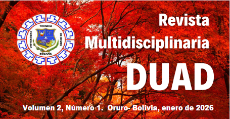 la Revista Multidisciplinaria Volumen 2, Número 1 “DUAD” de la gestión 2026. Esta nueva edición reafirma el compromiso de fomentar la investigación y el intercambio de conocimiento dentro de las Subsedes y de las Unidades Académicas Desconcentradas y la comunidad universitaria de la UTO en general.